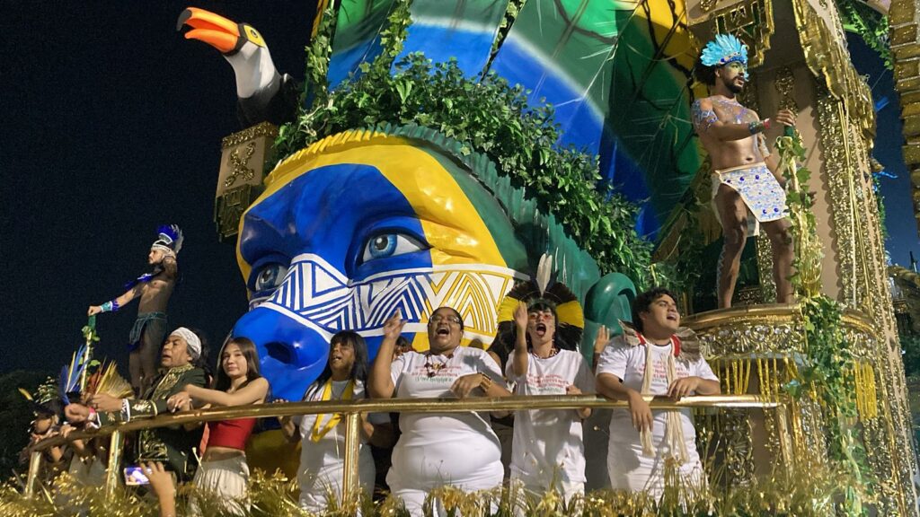 Durante o desfile, mestres de saberes, conselheiros e colaboradores do MCI estiveram ao lado de Krenak em um dos carros alegóricos, empunhando estandartes com frases como “Cocar é sagrado”, “Cada grafismo representa a espiritualidade de um povo” e “Demarcação já”, reafirmando o carnaval como espaço de disputa simbólica, visibilidade política e afirmação cultural.