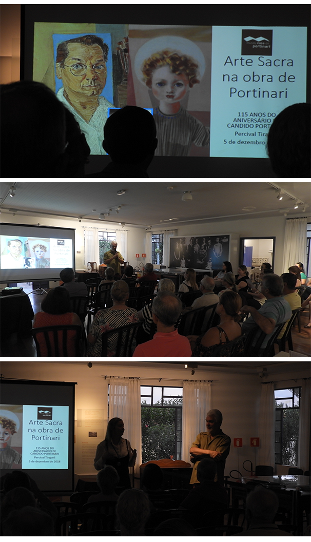 Em dezembro foi a vez da instituição discutir o acervo sacro do pintor, tema que possibilita diversas leituras. O Convidado para ação foi Percival Tirapeli, artista plástico, pesquisador, mestre e doutor em Artes pela ECA/USP, professor titular em História da Arte Brasileira no Instituto de Artes da Unesp/São Paulo (Universidade Estadual Paulista), que dividiu a apresentação em quatro momentos distintos: o primeiro a Capela da Nonna, o segundo a Série Bíblica, a seguir a capela de São Francisco na Pampulha e, por fim, as pinturas em Batatais e Brodowski.
